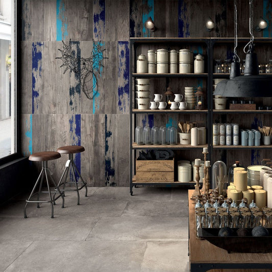 Le collezioni ABK attingono anche dall'estetica di cementi e metalli, reinterpretandoli in chiave contemporanea grazie alle tecnologie produttive all'avanguardia. Queste finiture sono ideali per ambienti moderni e industriali.