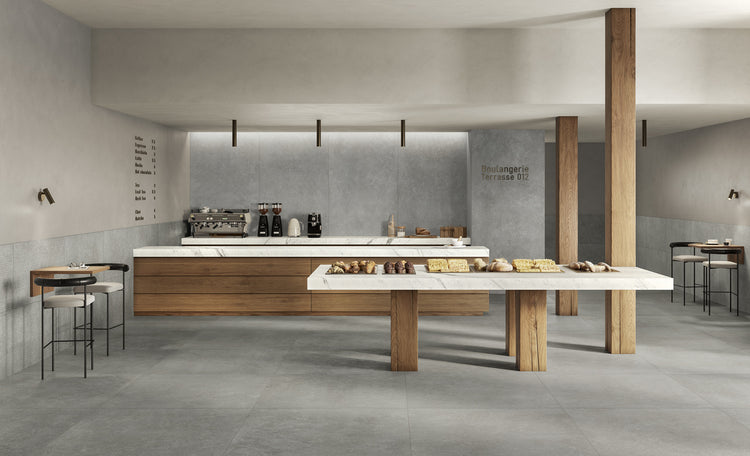 Il tempo scorre lasciando le sue tracce attraverso passaggi di materie che si sedimentano e si amalgamano, stratificazioni di polveri ed elementi naturali lavorati dagli agenti atmosferici e da un fluire continuo di acque marine, che esercitano la loro azione levigando e compattando le superfici. Background trova la sua ispirazione in una pietra Limestone di origine calcarea quasi monocromatica nella texture, collocata in questi scenari dominati da una natura forte e incontaminata, trattiene gli elementi primari che la caratterizzano ma li evolve per dare origine a un gres porcellanato dall’estetica minimale, con una finitura estremamente opaca e piacevole al tatto, che riveste ambienti di rara bellezza.