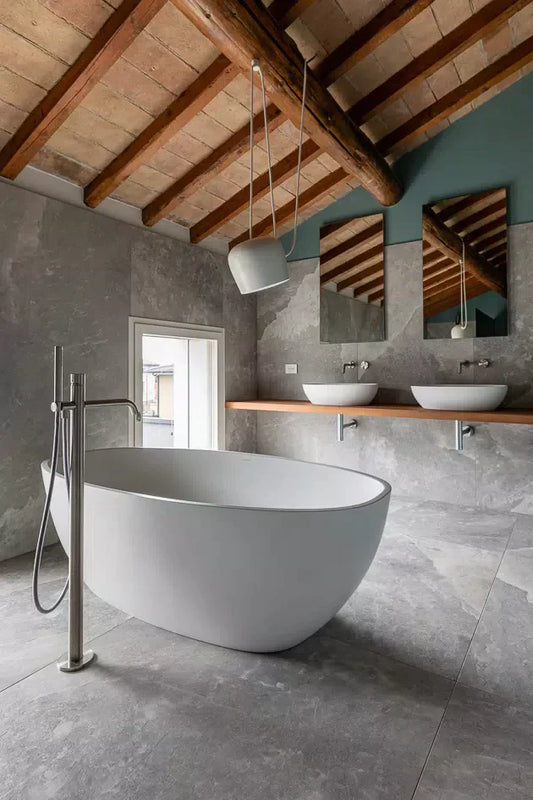 Il gres porcellanato effetto pietra mantiene le principali qualità del gres tradizionale, come la resistenza agli urti, alle macchie e agli sbalzi di temperatura. Questo lo rende la scelta perfetta per chi cerca un look naturale in varie aree della casa, come camere da letto, living room, bagni total look con lastre di grande formato, o anche per spazi esterni grazie alle piastrelle spessorate da 20 mm.