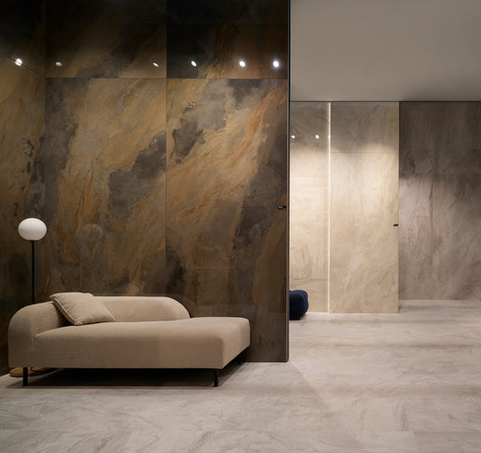 Il gres porcellanato effetto pietra mantiene le principali qualità del gres tradizionale, come la resistenza agli urti, alle macchie e agli sbalzi di temperatura. Questo lo rende la scelta perfetta per chi cerca un look naturale in varie aree della casa, come camere da letto, living room, bagni total look con lastre di grande formato, o anche per spazi esterni grazie alle piastrelle spessorate da 20 mm.
