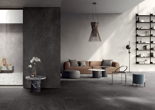 Il gres porcellanato effetto pietra mantiene le principali qualità del gres tradizionale, come la resistenza agli urti, alle macchie e agli sbalzi di temperatura. Questo lo rende la scelta perfetta per chi cerca un look naturale in varie aree della casa, come camere da letto, living room, bagni total look con lastre di grande formato, o anche per spazi esterni grazie alle piastrelle spessorate da 20 mm.
