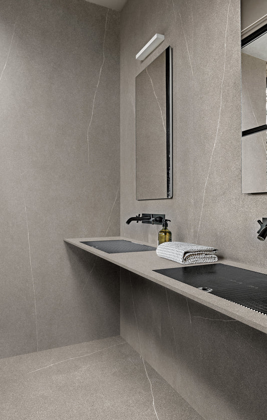 Il gres porcellanato effetto pietra mantiene le principali qualità del gres tradizionale, come la resistenza agli urti, alle macchie e agli sbalzi di temperatura. Questo lo rende la scelta perfetta per chi cerca un look naturale in varie aree della casa, come camere da letto, living room, bagni total look con lastre di grande formato, o anche per spazi esterni grazie alle piastrelle spessorate da 20 mm.