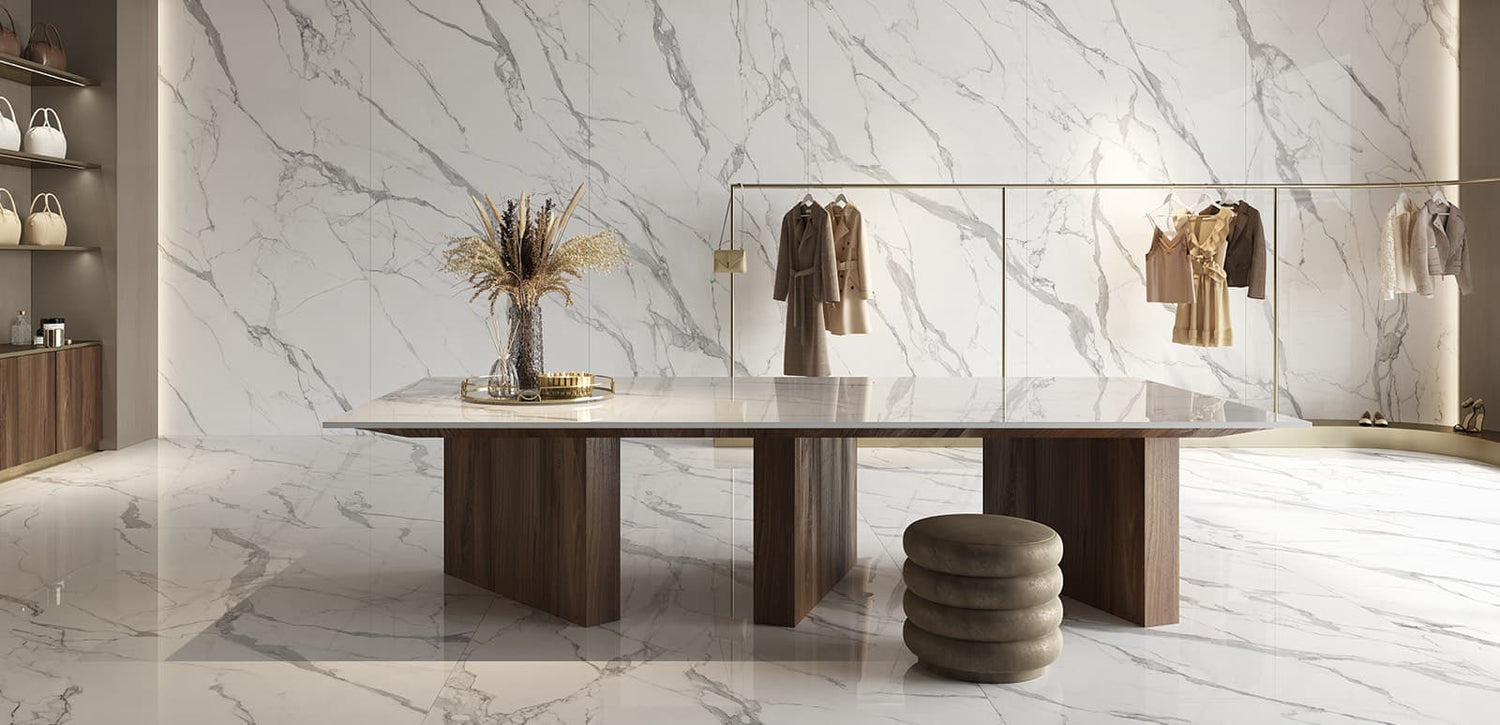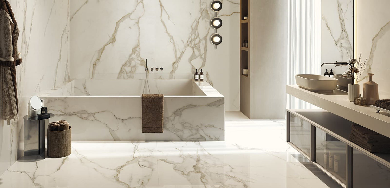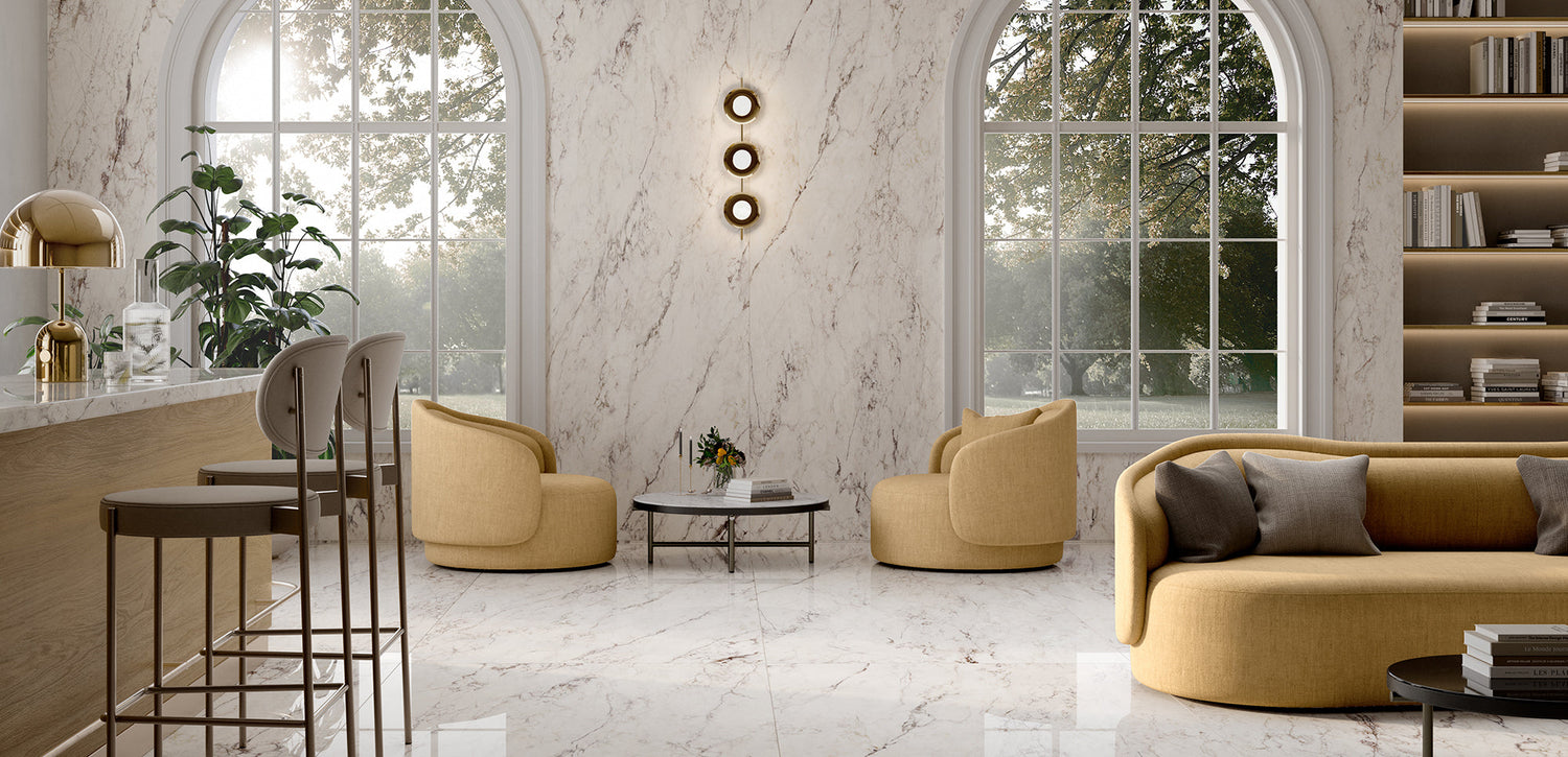 L'ECCELLENZA DEL MARMO BIANCO RIPROPOSTA IN GRES PORCELLANATO PER AMBIENTI DI LUSSO...