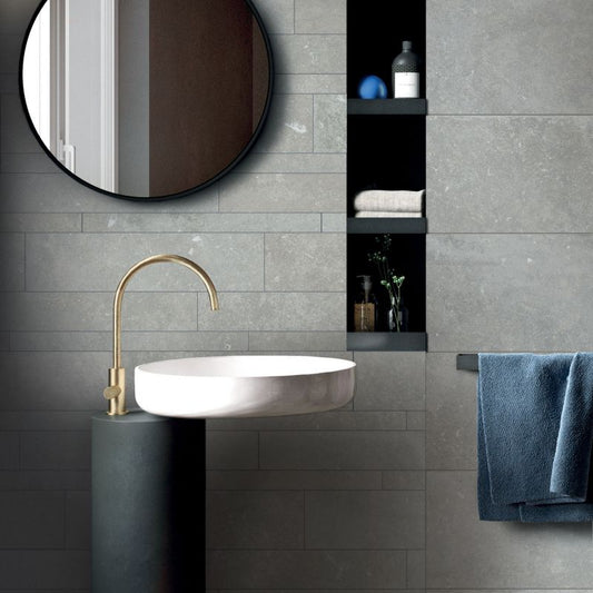 La collezione "Nordik Stone" di Flaviker si ispira alle pietre sedimentarie di origine belga e agli shellstones, arricchite da sottili venature a contrasto, fossili e antichizzazioni che conferiscono un aspetto rustico-chic. Con la sua capacità di integrarsi perfettamente con superfici dall'estetica più marcata come effetti legno, cemento e metalli di ispirazione industriale, "Nordik Stone" rappresenta una proposta di design versatile e di tendenza, ideale per creare ambienti dal carattere unico e distintivo.