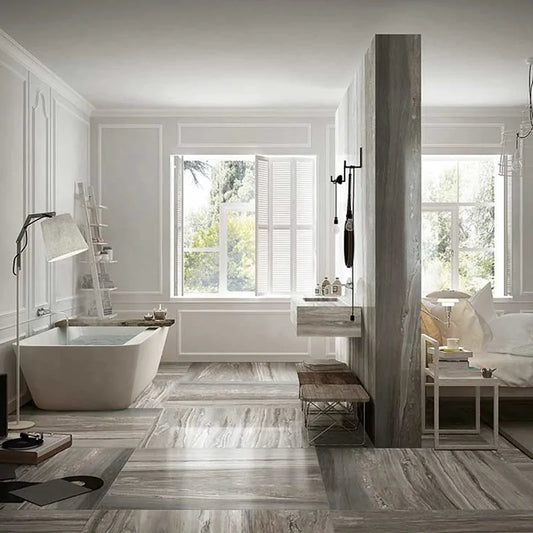 Le piastrelle 60x120 rappresentano una scelta versatile e sofisticata per una varietà di ambienti. Grazie alle loro dimensioni, queste piastrelle offrono ampie possibilità di utilizzo sia in spazi residenziali che commerciali. In ambito residenziale, sono ideali per pavimentazioni e rivestimenti di bagni e cucine, dove il gres porcellanato 60x120 non solo garantisce resistenza all'acqua e alle macchie, ma contribuisce anche a creare un effetto visivo di continuità e spaziosità. Le piastrelle bagno 60x120, ad esempio, possono essere utilizzate per rivestire intere pareti o pavimenti creando un aspetto moderno e pulito.