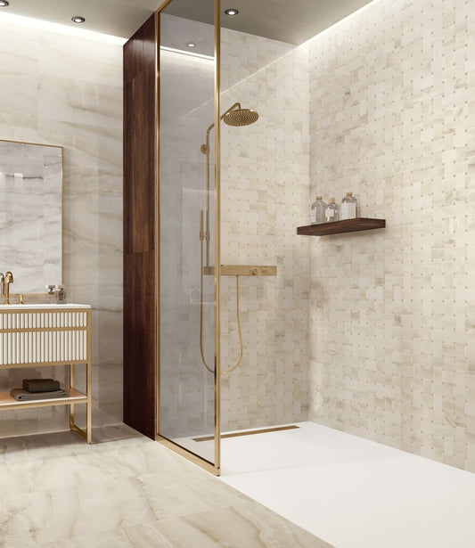 Our "Nobile" tiles are ideal for those looking for an interior design that embraces the elegance of natural marble with the advantages of porcelain stoneware: durability, resistance and simplified maintenance. Whether you are designing a dream bathroom, a luxury kitchen or a living room with an elegant atmosphere, "Nobile" offers versatile and sophisticated solutions to enhance every space.