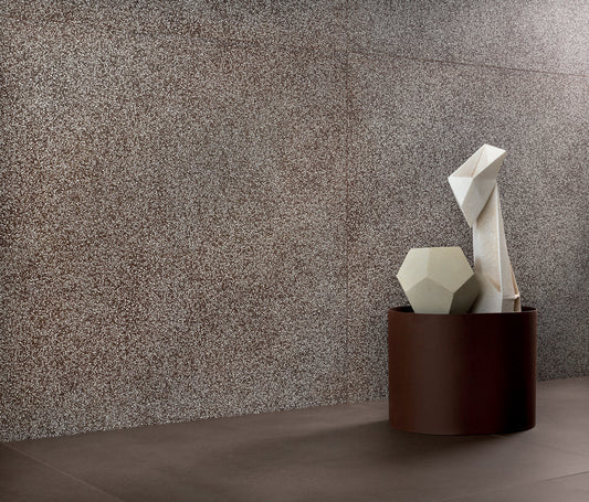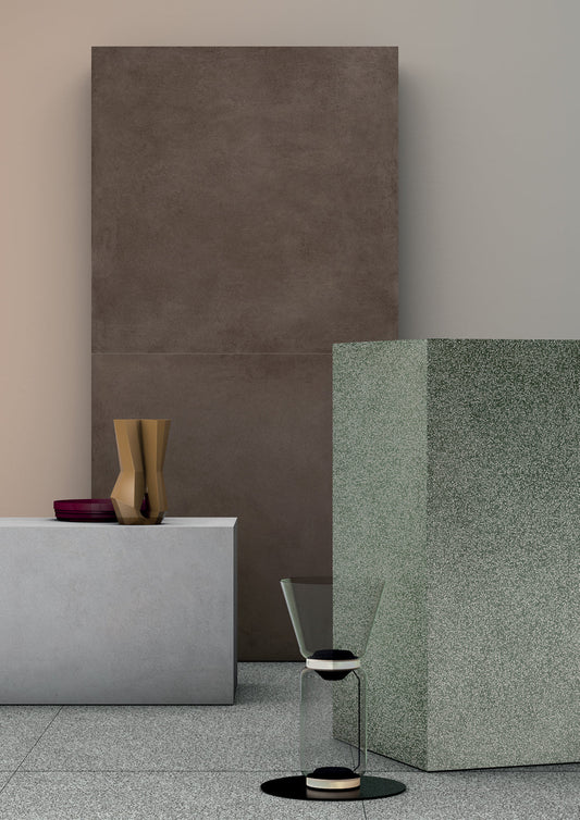 Technological advancement in the production of porcelain stoneware has led to an extremely realistic reproduction of materials such as concrete. Concrete effect tiles, due to their ability to accurately imitate raw concrete, plaster and modern cements, have become a popular choice. These are available in both standard finishes and more elaborate and decorated versions.