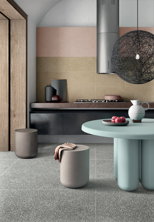 Ideal for various spaces in the home, such as the living room, kitchen, bathroom or bedroom, the concrete-effect stoneware tiles give the rooms an urban and contemporary style. Their versatility in design, enriched by modern production and decoration techniques, allows to obtain both a concrete appearance and aesthetic effects aged over time.