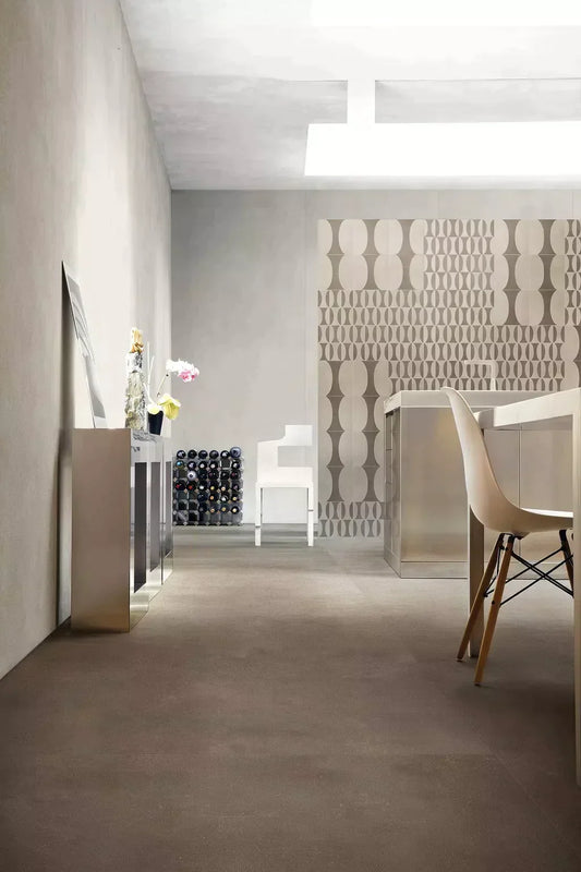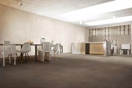 Technological advancement in the production of porcelain stoneware has led to an extremely realistic reproduction of materials such as concrete. Concrete effect tiles, due to their ability to accurately imitate raw concrete, plaster and modern cements, have become a popular choice. These are available in both standard finishes and more elaborate and decorated versions.