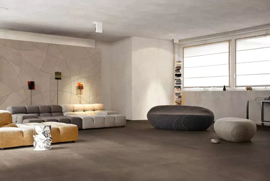 Technological advancement in the production of porcelain stoneware has led to an extremely realistic reproduction of materials such as concrete. Concrete effect tiles, due to their ability to accurately imitate raw concrete, plaster and modern cements, have become a popular choice. These are available in both standard finishes and more elaborate and decorated versions.