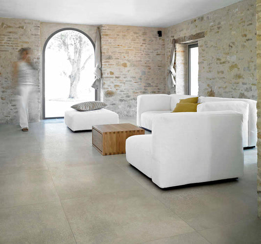 Ideal for various spaces in the home, such as the living room, kitchen, bathroom or bedroom, the concrete-effect stoneware tiles give the rooms an urban and contemporary style. Their versatility in design, enriched by modern production and decoration techniques, allows to obtain both a concrete appearance and aesthetic effects aged over time.