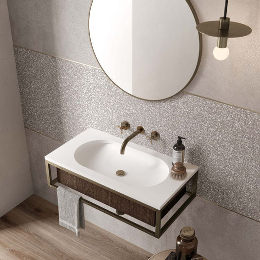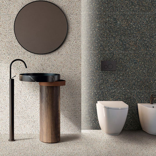 Ideal for various spaces in the home, such as the living room, kitchen, bathroom or bedroom, the concrete-effect stoneware tiles give the rooms an urban and contemporary style. Their versatility in design, enriched by modern production and decoration techniques, allows to obtain both a concrete appearance and aesthetic effects aged over time.