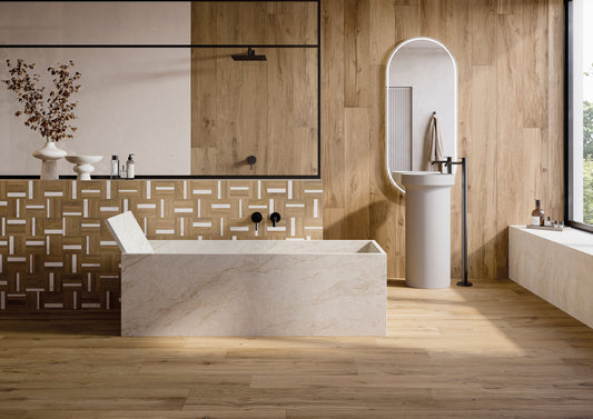 Our "Nobile" tiles are ideal for those looking for an interior design that embraces the elegance of natural marble with the advantages of porcelain stoneware: durability, resistance and simplified maintenance. Whether you are designing a dream bathroom, a luxury kitchen or a living room with an elegant atmosphere, "Nobile" offers versatile and sophisticated solutions to enhance every space.