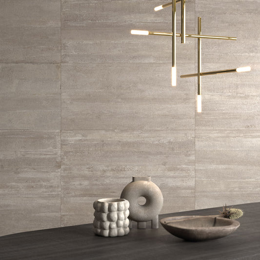 Technological advancement in the production of porcelain stoneware has led to an extremely realistic reproduction of materials such as concrete. Concrete effect tiles, due to their ability to accurately imitate raw concrete, plaster and modern cements, have become a popular choice. These are available in both standard finishes and more elaborate and decorated versions.
