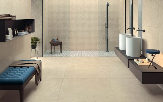 Technological advancement in the production of porcelain stoneware has led to an extremely realistic reproduction of materials such as concrete. Concrete effect tiles, due to their ability to accurately imitate raw concrete, plaster and modern cements, have become a popular choice. These are available in both standard finishes and more elaborate and decorated versions.