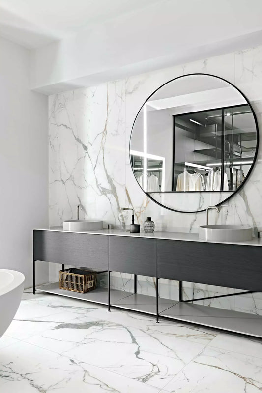 The use of advanced technologies, such as high-resolution digital printing, has expanded the expressive possibilities of marble-effect tiles, creating a product that combines the charm of marble with renewed functionality.