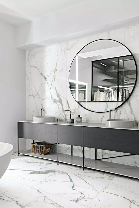 The use of advanced technologies, such as high-resolution digital printing, has expanded the expressive possibilities of marble-effect tiles, creating a product that combines the charm of marble with renewed functionality.