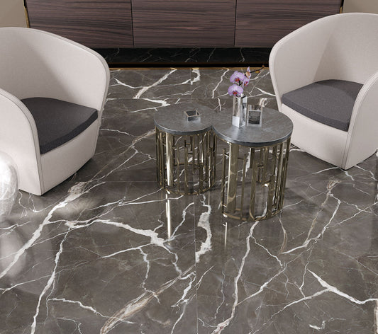The range of marble-effect porcelain stoneware ranges in a variety of colors including shades of white, grey, black, beige and brown, with a rich variety of shades and veins. The surface finishes of the tiles are equally variable, offering options ranging from smooth matt for a natural look, to glossy for a more sophisticated effect.