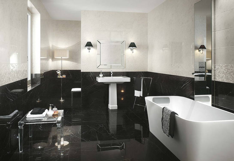 Our "Nobile" tiles are ideal for those looking for an interior design that embraces the elegance of natural marble with the advantages of porcelain stoneware: durability, resistance and simplified maintenance. Whether you are designing a dream bathroom, a luxury kitchen or a living room with an elegant atmosphere, "Nobile" offers versatile and sophisticated solutions to enhance every space.