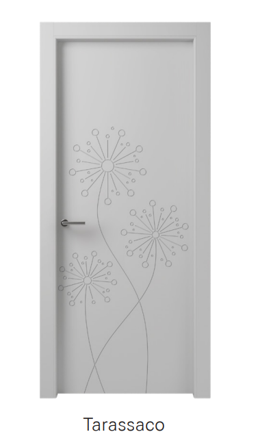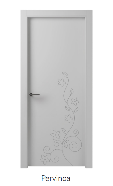 • Anta laccata opaca: ciclo con 3 mani di vernice e finitura 10±5 gloss; incisione a “V” (≈5 mm) con decori ispirati alla natura.