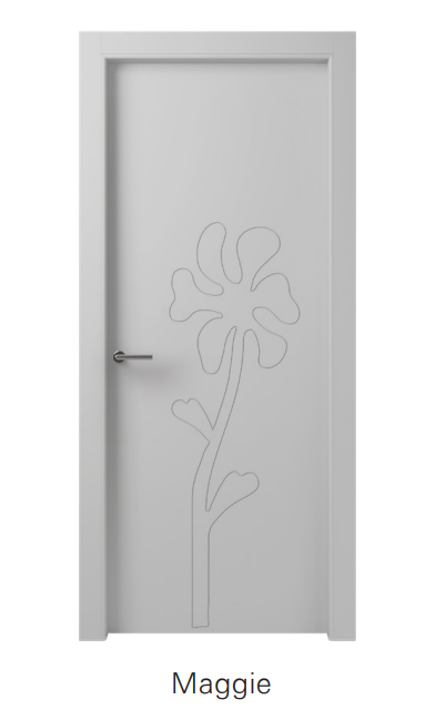• Anta laccata opaca: ciclo con 3 mani di vernice e finitura 10±5 gloss; incisione a “V” (≈5 mm) con decori ispirati alla natura.