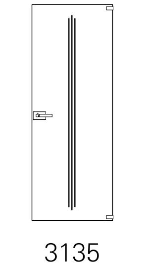 • Ferramenta battente: 2 cerniere pivot (terza oltre H > 2200 mm o L > 900 mm) con apertura fino a 180°; mini serratura magnetica con scrocco silenziato; cover finitura Argento (opzionali Bianco, Nero, Cromo lucido).