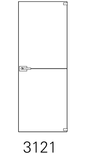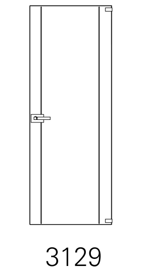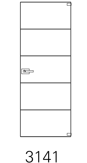 • Ferramenta battente: 2 cerniere pivot (terza oltre H > 2200 mm o L > 900 mm) con apertura fino a 180°; mini serratura magnetica con scrocco silenziato; cover finitura Argento (opzionali Bianco, Nero, Cromo lucido).