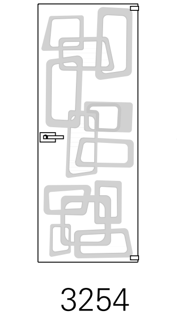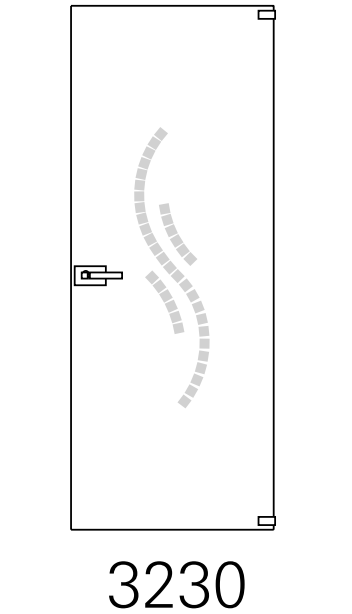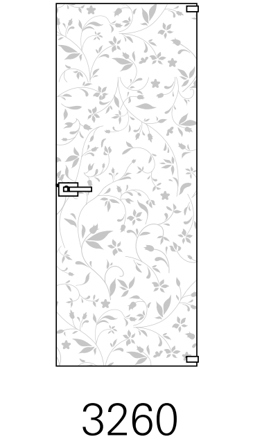 • Opzioni e personalizzazioni: porte doppie con disegno sabbiato continuativo; orientamento del motivo in funzione del verso di apertura; maniglieria dedicata per vetro.
