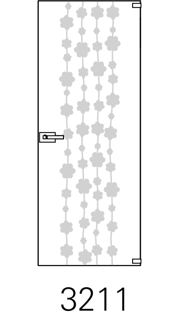 • Opzioni e personalizzazioni: porte doppie con disegno sabbiato continuativo; orientamento del motivo in funzione del verso di apertura; maniglieria dedicata per vetro.