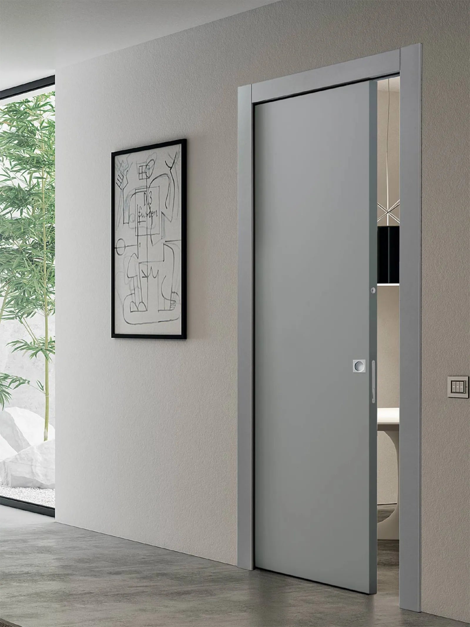 La collezione CL Opaco propone porte interne laccate a mano dal design lineare, lisce e senza inserti, ideali per ambienti moderni ed essenziali. La finitura opaca è ottenuta con vernici all’acqua a basso impatto, certificate, disponibili in tutte le BP Colors e anche RAL/NCS per la massima personalizzazione. La struttura è tamburata “big” con listelli in abete maggiorati 50 mm, anima a nido d’ape e pelli in MDF; bordi IPER4BOARD in ABS 10/10 sui 4 lati. Di serie cerniere a scomparsa, serratura magnetica e guarnizioni acustiche ACU PLUS; telai TR/L8 (IDRO, CARB, FSC®) e molteplici sistemi di apertura, inclusi battente e scorrevole a scomparsa.