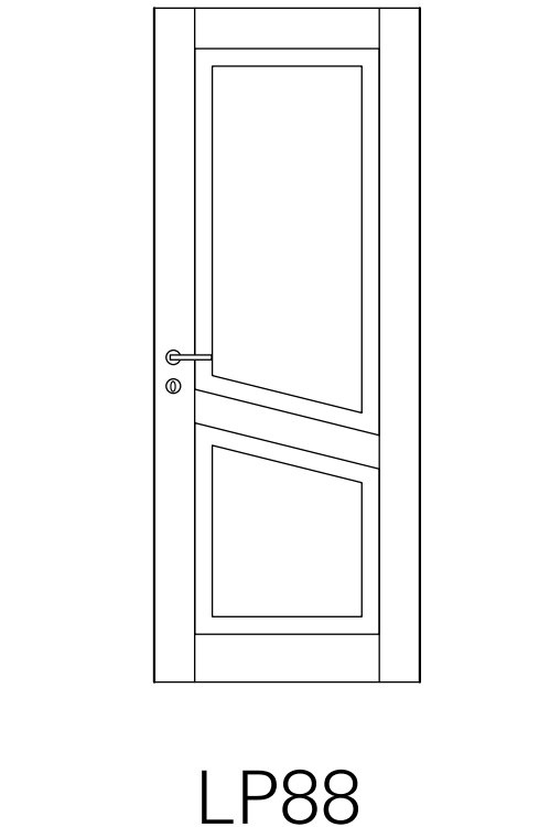 • Struttura anta (tamburata): telaio perimetrale in massello 50 mm (finger-joint) per stabilità; anima a nido d’ape in carta kraft 100% riciclata; pelli esterne in MDF 8 mm idonee alla pantografatura.